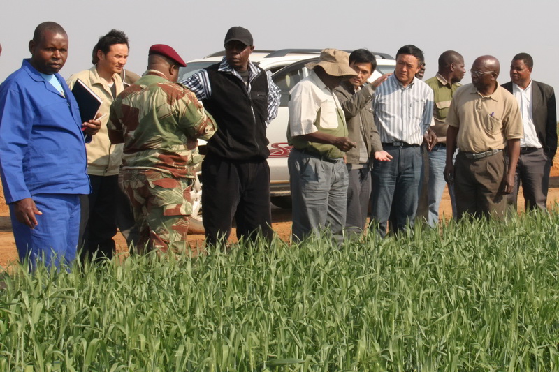 该公司对于高坡等保墒能力差、灌溉设施延伸不到的地块,力争种一块、绿一块、丰产一块,着力主攻单产,提高亩均效益。为保障抗旱用电,6月下旬,小麦播种出苗后,该公司专门邀请津巴布韦供电公司、西马绍兰省电力分公司及农委官员前来观摩洽谈,建立沟通协作机制,改善了皖津农场小麦喷灌用电环境。同时,明确内部责任,在提水灌溉各时段,24小时轮班值守,坚持有电即喷,发现问题及时解决。7月下旬,SISI农场因突然停电回水压力过大,加之设备老化,造成水泵进水管莲蓬头处断裂,并烧毁了一台电机,由于地处偏远、交通不便,配件难以及时购买更换。时不待我,皖津公司积极应对这一紧急情况,迅速从其他农场调来电机以缓解灌溉压力,因陋就简攻克难题,夜以继日维修设备,3天后恢复正常。中国人“艰苦奋斗、勇于挑战”的工作精神赢得了津方员工的真诚赞许。