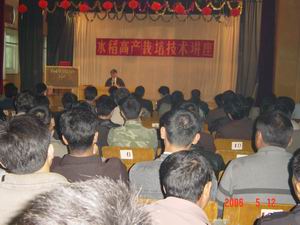 结合理论和实践,朱教授重点讲授了机插水稻高产 栽培技术。朱教授着重就机插水稻壮秧标准、床土 培肥、秧床制作、种子与催芽、落谷密度、铺土播 种盖膜、秧田管理、栽插、大田管理、施肥等十个 重要方面的技术环节作了深入浅出、条理分明、生 动细致的讲解。